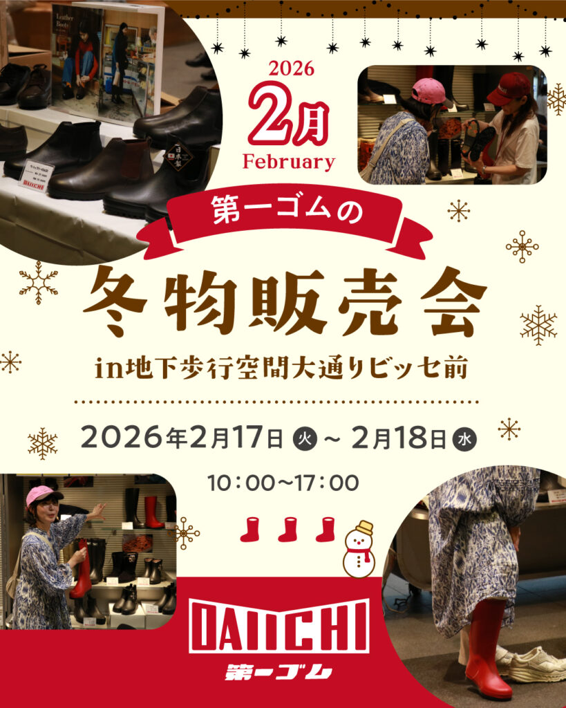 販売所では、第一ゴムの多彩な製品を実際に手に取ってご覧いただけます。素材の質感や履き心地をその場で確かめながら、お客様にぴったりの一足をゆっくりとお選びいただけます。